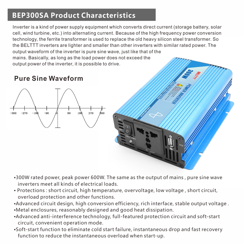 BEP300SA 300W Pure sine inverter Features